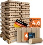 Diese hochwertigen RUF Buchenholzbriketts bestehen aus feinem Sägespänen und Staub, die unter extrem hohem Druck (300–400 bar) zu dichten, formstabilen
